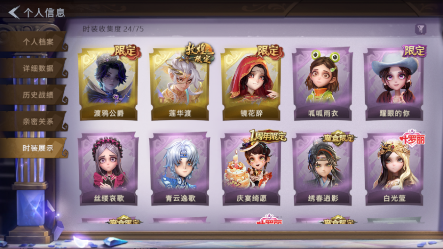 装备描述:【金色皮肤】零-渡鸦公爵、逍遥-莲华渡、巫铃儿-镜花辞 【紫色皮肤】艾伦-黎明猎手、阿念-庆宴绮愿、爱丽丝-耀眼的你、莉莉-莓果陷阱、莉莉-除妖小师妹、莉莉-情公主、薇薇安-白光莹、零-青云逸歌、爱丽丝-丝缕哀歌、逍遥-绣春逍影、小黄-呱呱雨衣 【道具皮肤】音响-鸣沙鼓、黄牛能量饮料-青玉抱丹、额外的背包-灵感泉之花、专业手电-星寂、传送按钮-逆时审判、摸金符-紫霄、喷气背包-乘风溯雪、音响-happy猫、刺刀-碧络琅环、黄牛能量饮料-珍珠芭乐莓莓、电击枪-甜蜜泡泡枪、闪光弹-金戈玄铜、长鞭-飞天绫、桃木剑-凤鸣九天、桃木剑-绯色遗证、铲子-撒拉弗的祷告、额外的背包-飞花令、急救包-蔷薇物语、传送按钮-昆仑镜、夜视仪-金丝眼镜、长鞭-小狗蛇点点鞭、铲子-赞萌波板糖、葫芦-伏妖塔、铲子-卡皮巴拉小黄豚铲、腰包-私藏的银河、转轮手枪-新星时代、短管猎枪-赞萌露比水枪、铲子-龙鳞、伞-郁金春信、长鞭-缚誓之锁、腰包-月下莲台、背饰-侧耳倾听、背饰-夜浮船、背饰-白鼬趴趴、背饰-潮汐小海兔、背饰-梵音莲华、背饰-蝶恋花 【美妆】暗夜小恶魔 【头饰】饺饺者、马上有钱、腊肠扭