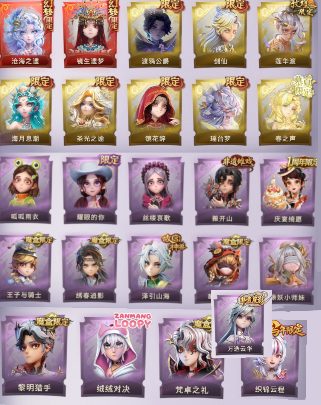 2幻梦0星耀8耀世典藏16道具皮65沧海之遗,镜生遗梦,剑仙,春之声,海月息潮,瑶台梦等