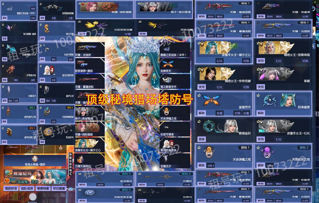 〖安全模式可帮解除,点上号器的连系号主发安全码 等待会即可〗【新增道具介绍】:【涅槃女王+波塞冬女王-潮夕之心,冰火金蝰翼,泳装潮夕配件】〖神谕套全核心,史诗角色双极羽翼,天命渊瞳戒,波塞冬女王-幻化〗蓝雨玄扇双姝,〖最新增伤角色:莱娜 | 天命观吾之戒〗最新变身女英雄望舒丨丨最新头盔冰雪皇冠霜霆之怒战盔丨 涅槃幻化,涅槃再临,蚀日天蝰, 蛇灵霞帔,永寂守护者丨