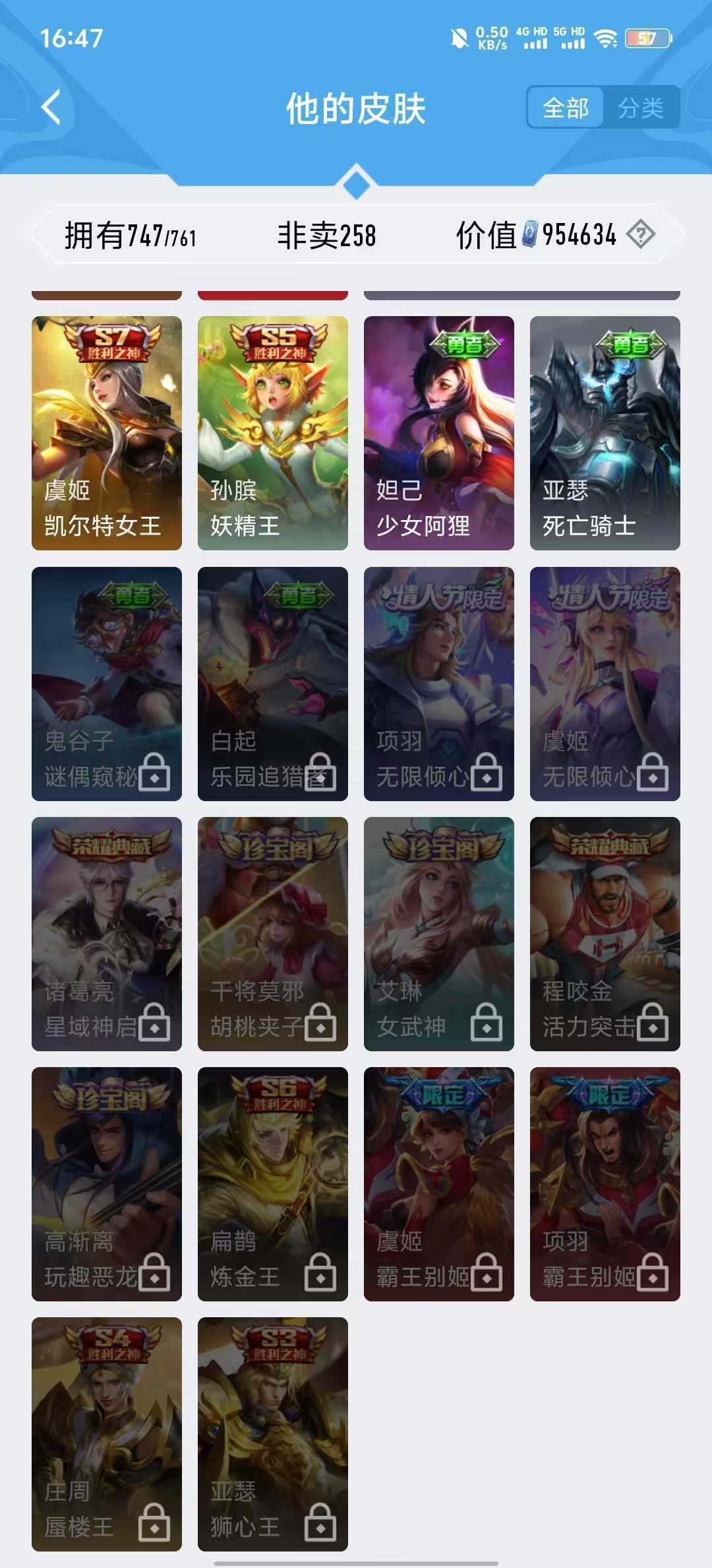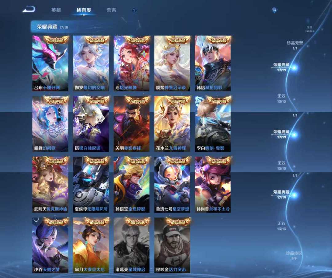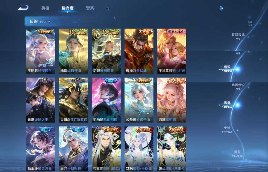 本游戏账号: V10荣耀贵族用户,基础段位:最强王者,英雄多,皮肤多。典藏皮肤12个,感受典藏皮肤带来的优质体验快感,FMVP皮肤10个,尽情享受FMVP皮肤带来的主角光环, 私人所属英雄皮肤有:瑶 拾光映像||李白 鸣剑·曳影||貂蝉 幻阙歌||韩信 弑枪猎影||虞姬 神鉴启示录||花木兰 九霄神辉||夏侯惇 无限飓风号||关羽 赤影疾锋||铠 银白咏叹调||武则天 倪克斯神谕||孙尚香 杀手不太冷||芈月 大秦宣太后,等等