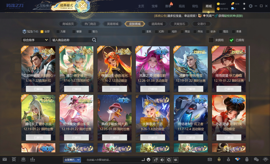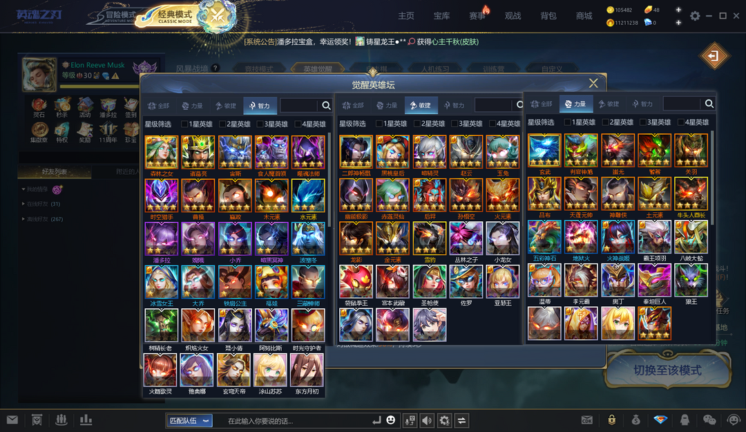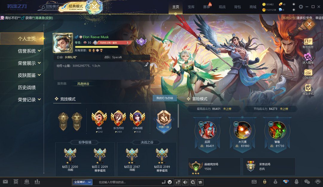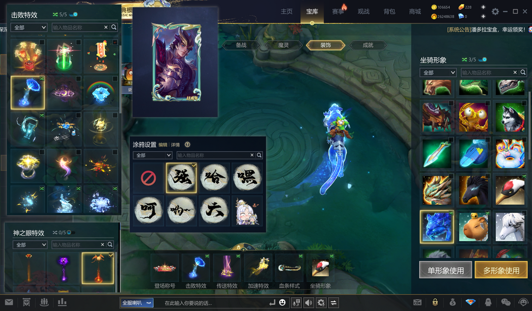 ④已开通蓝钻,四个新元素觉醒,二郎、精卫、铁扇新皮肤,四时记全皮,火神月神新皮肤(全),星空豹、卡皮巴拉、雷羽玄鹤坐骑,玉帝血条,龙吸水击杀,好看眼位、传送特效、防御塔皮肤等众多装饰,31个觉醒英雄。详情见图~