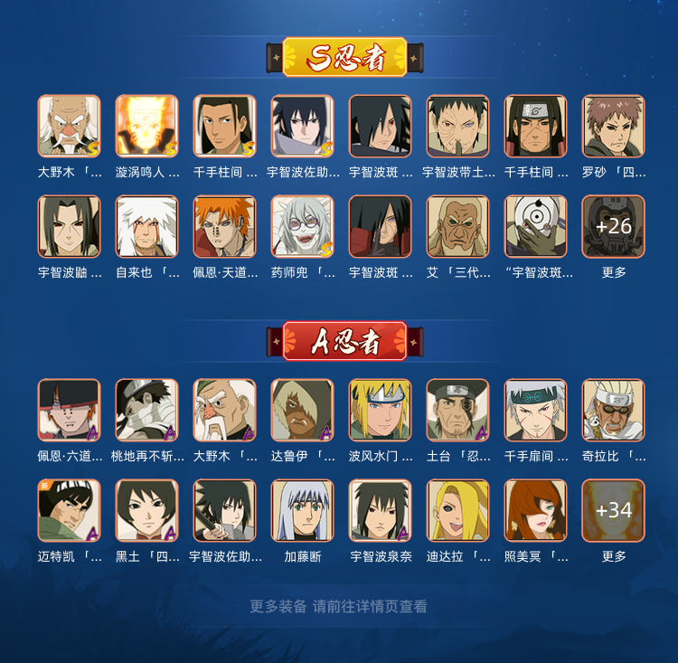 装备描述:曲|46S79A三代风影/忍战艾/大筒木桃式/漂泊系列全套/全高招S/全忍法帖S/全点卷A/多传承奥义禁止利用账号进行开挂、使用辅助违规软件诈骗等违规操作。