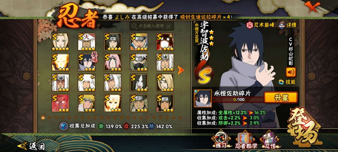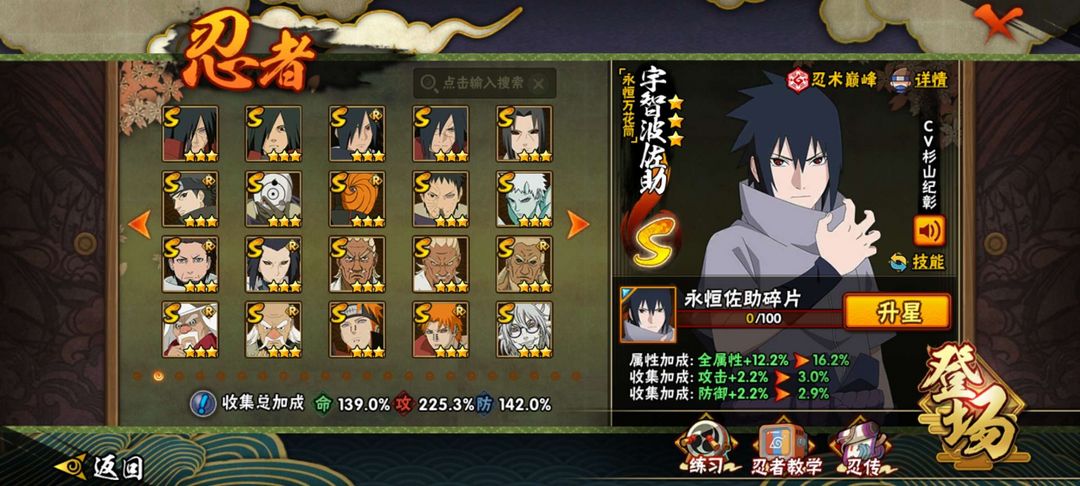 装备描述:43S55A 十尾带土 晓创生迪达拉 九喇嘛水门 仙人巳月 六尾鸣人 三忍自来也 须佐卡卡西 白面具 须佐止水 永恒佐助 黄猿 天道超 创立斑 忍战樱 仙人兜 自来也 秽土二代 秽土柱间 百豪纲手
