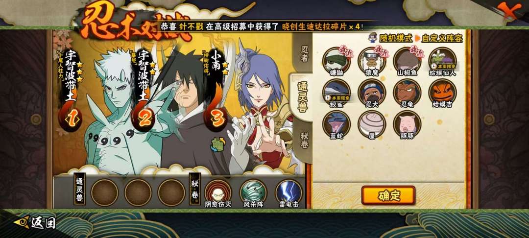 装备描述:小号 望善待 暴怒小孩 六尾带土 新迪达拉 己月 秘卷 霸体 各种都有 通灵也完全够用 平民套装