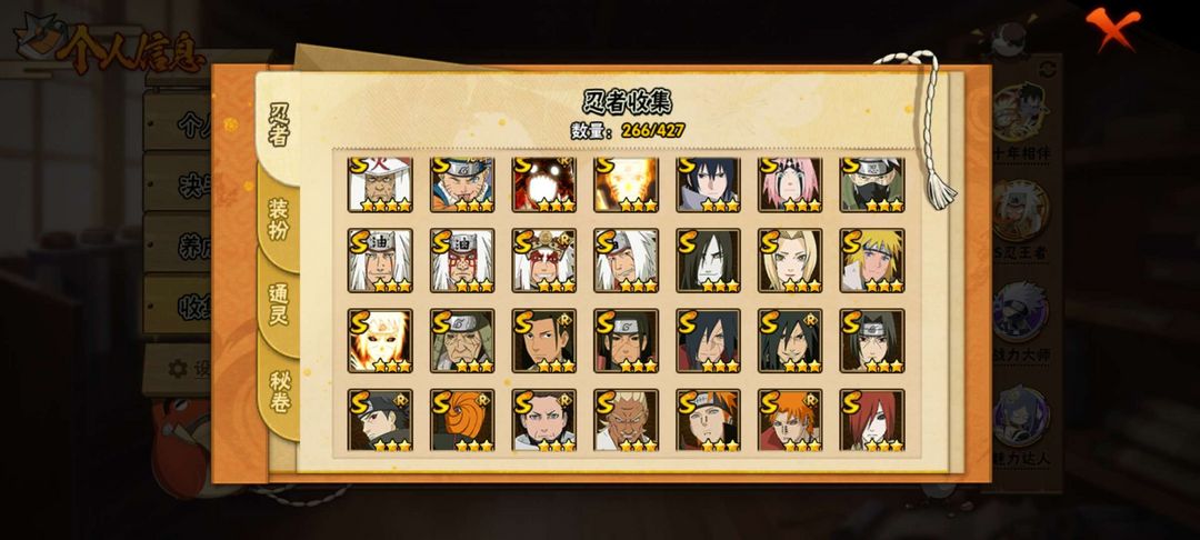 装备描述:31S+52A,共有267个忍者,战力1650万,欢迎各位吴彦祖刘亦菲上号!不要乱动我的活动,商店,忍法帖,乱动了我看你真是没家教的孤儿,毕竟浮木都没了