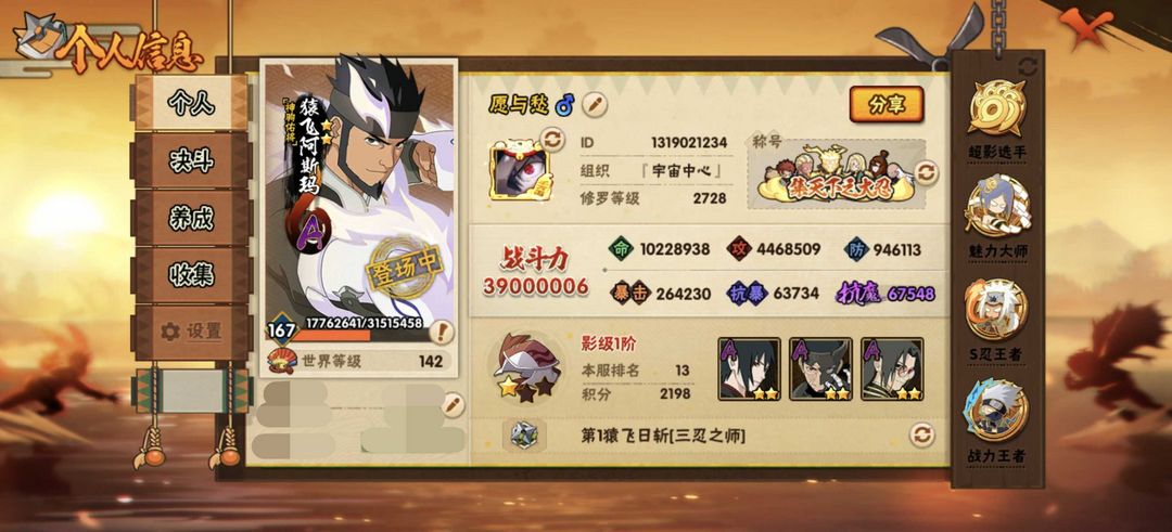 ❤️全忍者❤️全通灵❤️3900W战❤️56S❤️神驹阿斯玛❤️十尾带土❤️漂泊带土❤️黑绝