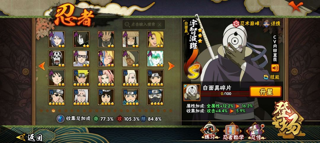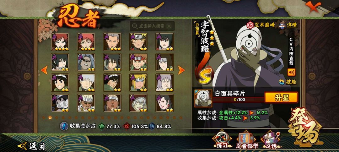 忍战雷影 白面具 秽土长门 死门凯 解班 永恒佐助 黄猿 百战全系列 金水门 须佐卡