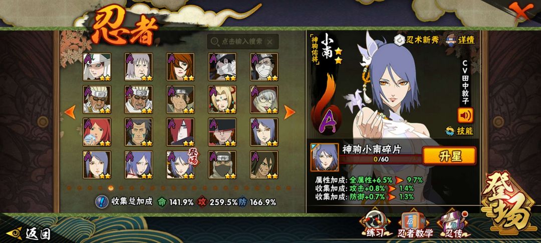 48个S✨66个A✨300个忍者✨神驹小南加皮肤✨侠影佐助✨全新S六道带土✨欢迎大家来体验哦!!!