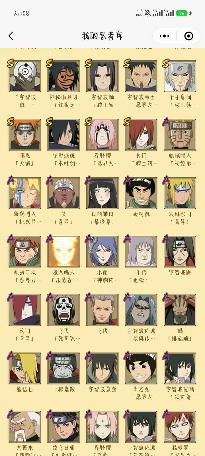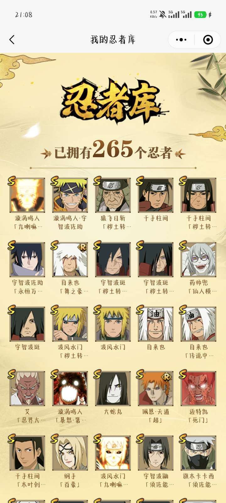 装备描述:这265位忍者,是你在忍界闯荡的见证。从S级的传说大佬到C级的青涩少年,每一位都承载着一段热血与羁绊的故事。你的忍者库,就是一部浓缩的《火影忍者》史诗——这里有木叶的火之意志,有晓组织的野心,有五影的担当,更有你作为忍者的专属荣耀。