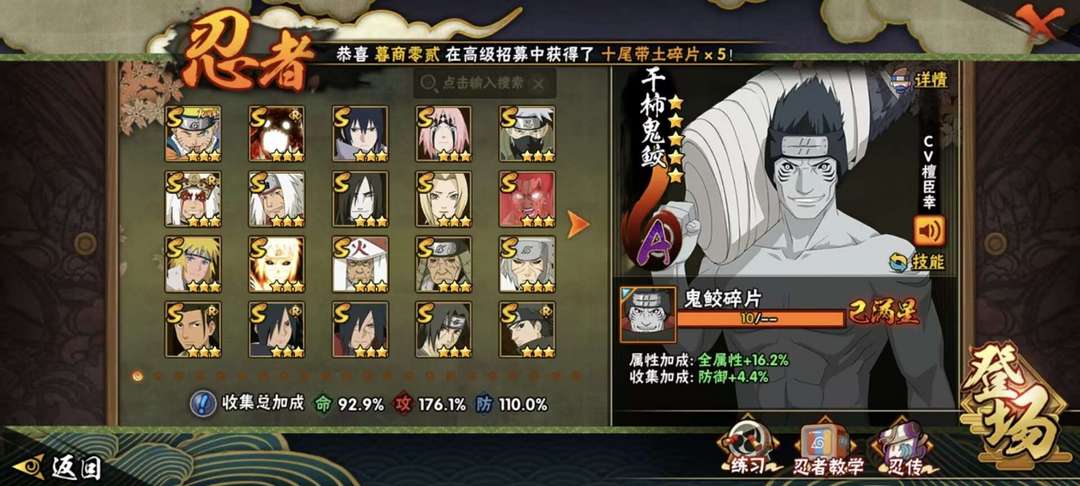 装备描述:漂泊佩恩 漂泊小南 侠影佐助 侠隐再不斩 三代风影秽土转生 忍界大战卡卡西 六道带土 创立柱间 创立佩恩 暴怒六尾