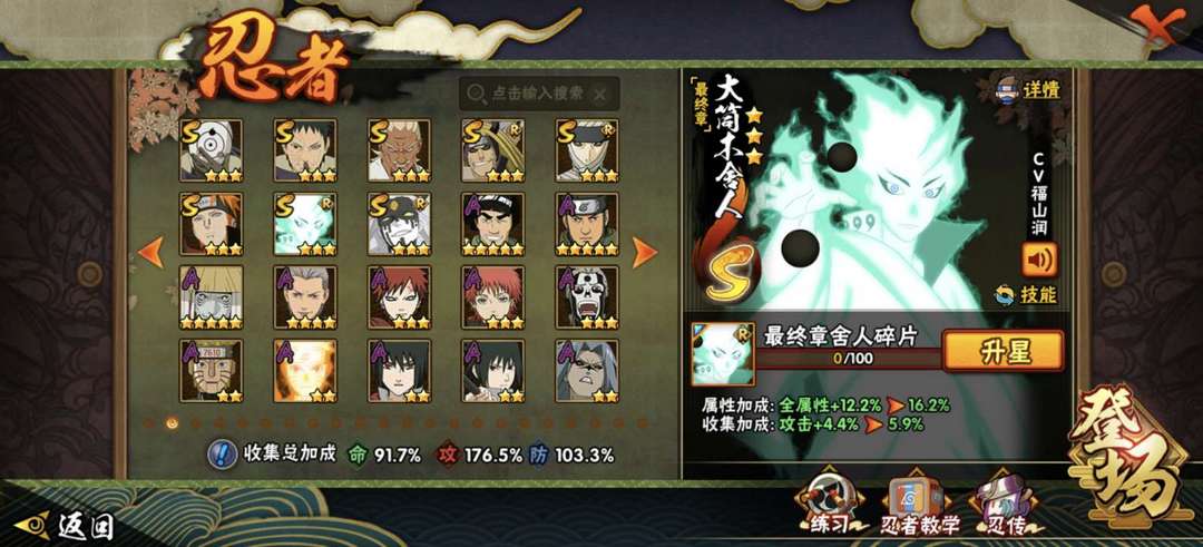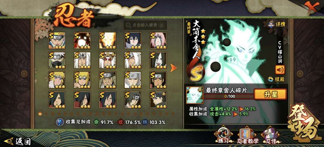 装备描述:漂泊带土,侠隐佐助,鸡翅佐助,新春水门,秽土四人组,白面具,忍战带土,暴力小樱