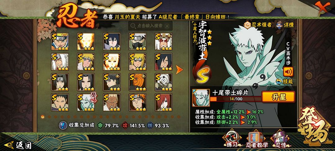 十位人柱力带土*无影会谈斑*22s。44a。195忍,热门忍者飘带,秽土鼬,金水,死水,解斑,黄猿