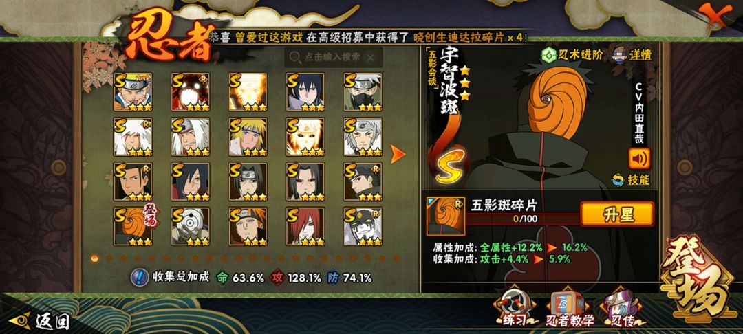 装备描述:20s38a黑绝,新南,飘带,六尾,桃矢(a和s都有),假班,解斑,新水,侠照,须佐止水 熊猫