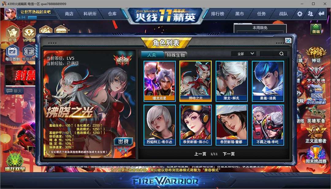 游戏区服:火线精英-电信区-电信一区