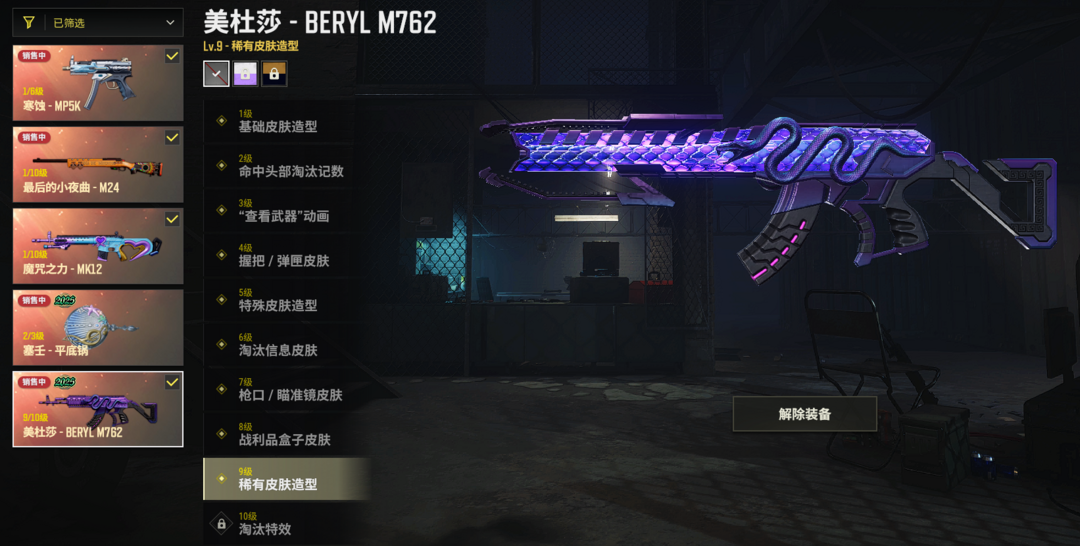 不可排✅⑨级美杜莎M762✅夜曲M24✅寒蚀MP5K✅魔咒MK12✅②塞壬锅✅双女团白战神粉柏林战神