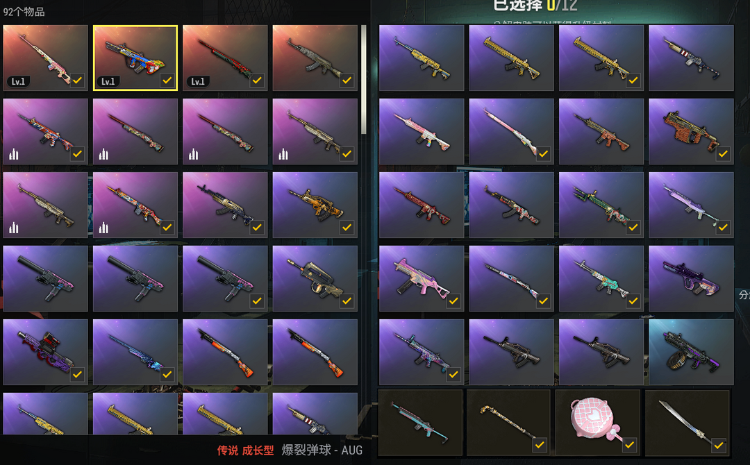 可排位✅3神器✅弹珠AUG✅悟空M24✅粉梦德拉贡✅绷带AK✅星期天M4✅蒸汽SKS✅漫彩SLR✅霓虹军团套装✅PGC帝皇套装✅群雄M4套装✅雪色美人套装✅金面具✅