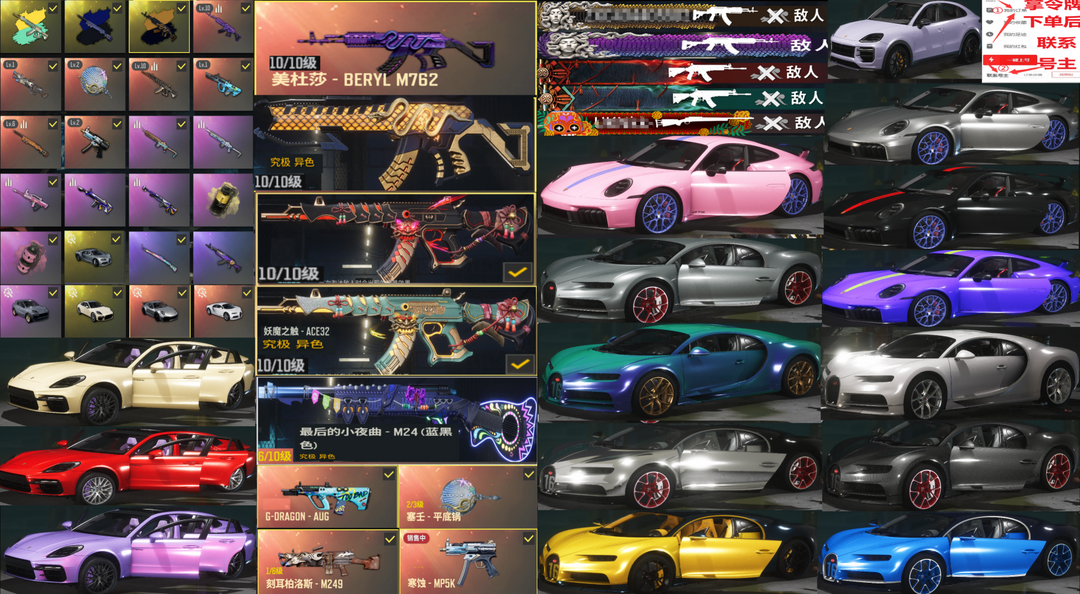 30辆保时捷911帕拉梅拉布加迪威龙✅⑩异色美杜莎金762⑩异色妖魔ACE小夜曲M24斗鱼柏林可排位