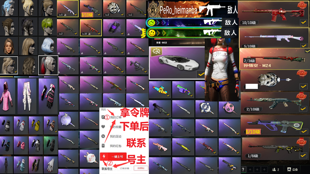 2000皮7神器✅⑩朱雀M4⑥霓虹AUG⑤玩偶大炮小丑女粉战神柏林迈凯伦白虎青龙762霓虹绿头可排位