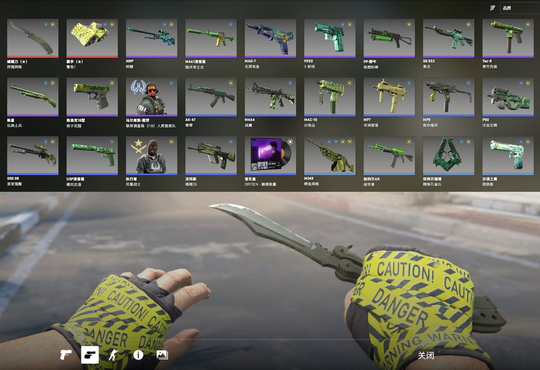 完美C+✅绿色套✅蝴蝶刀✅警告手套✅寒翠AK47✅树蝰大狙✅战鹰M4A4✅跷跷板沙鹰