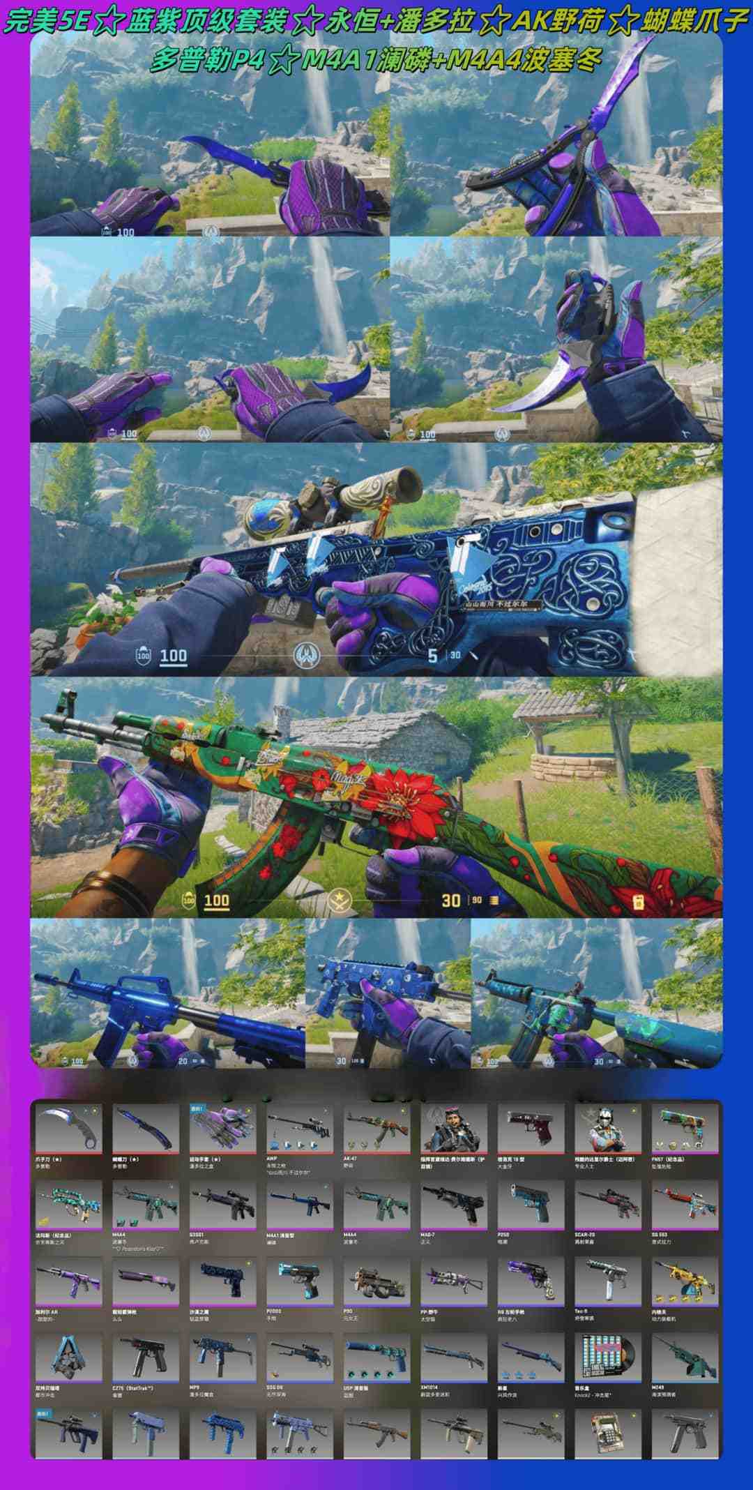 完美5E⭐蓝紫顶级套装永恒+潘多拉⭐AK野荷⭐蝴蝶+爪子多普勒p4⭐M4A1澜磷+M4A4波塞冬