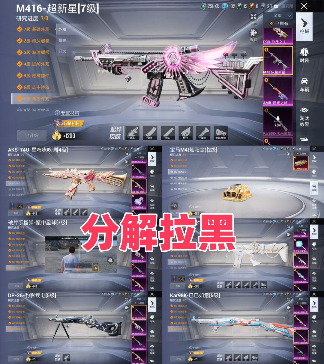 满级红图卡盟-6红装43粉装-25升级枪-10载具-7级超新星M4-小丑都市赤蝎金鞋-黄金宝马