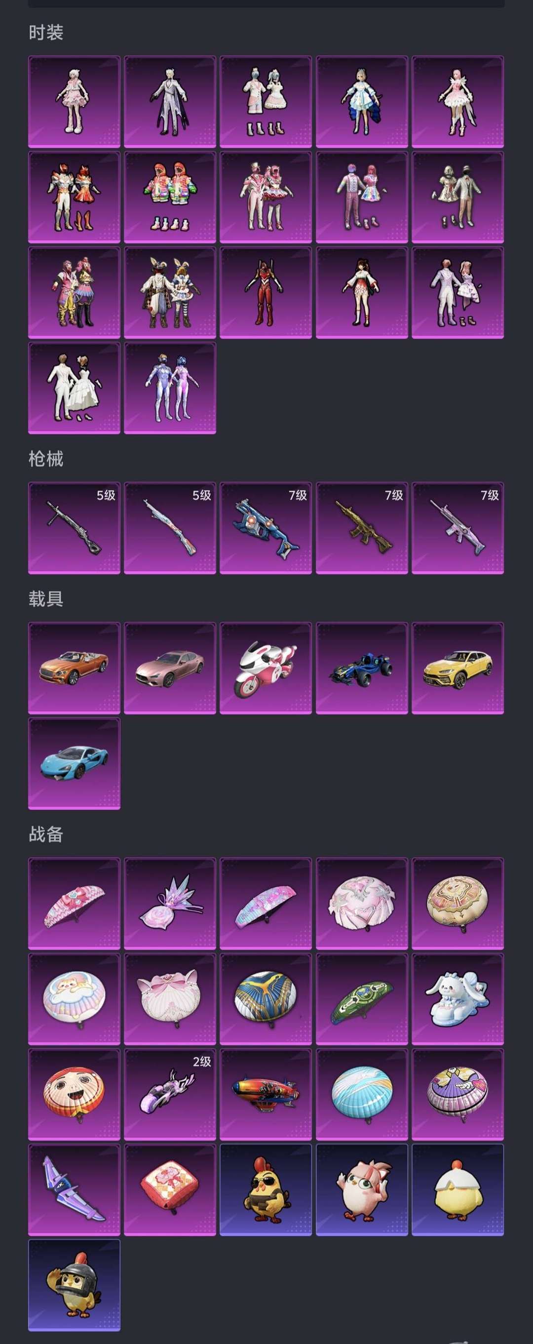 妹子号✨17粉装✨5特效枪✨6载具✨僚机,满级五爪,红螳螂,火箭少女,红眼罩,猫爪兔鞋✨二级飞行器!