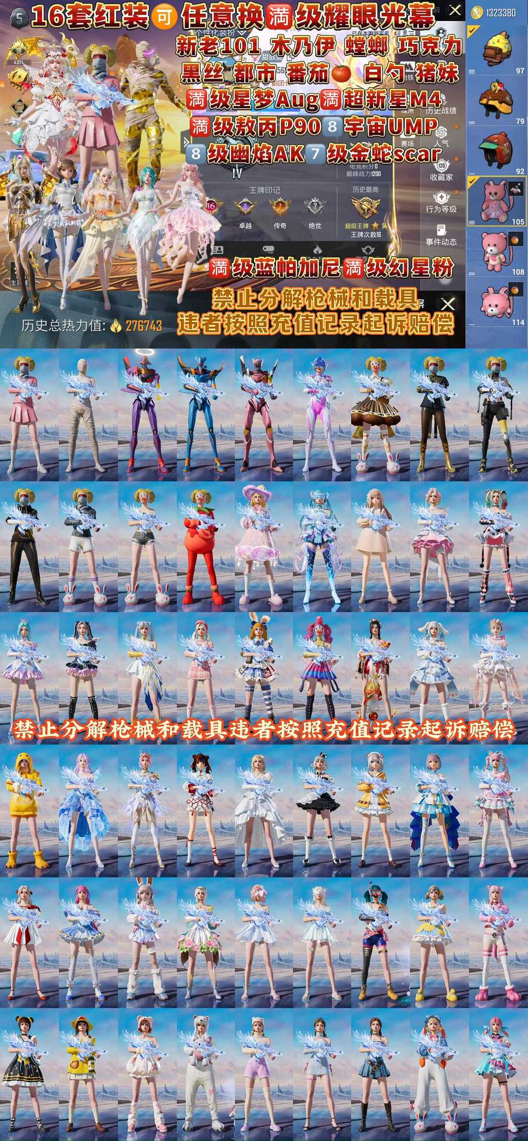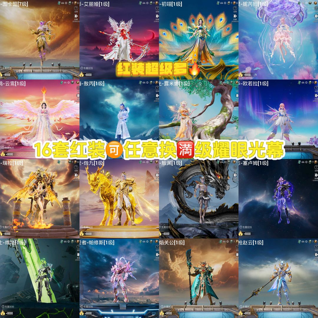 全网至尊全素材老101✨16套红装满级艾丽娅图卡盟✨22把9级枪满级星梦超新星哪吒幽冥金蛇满级帕加尼