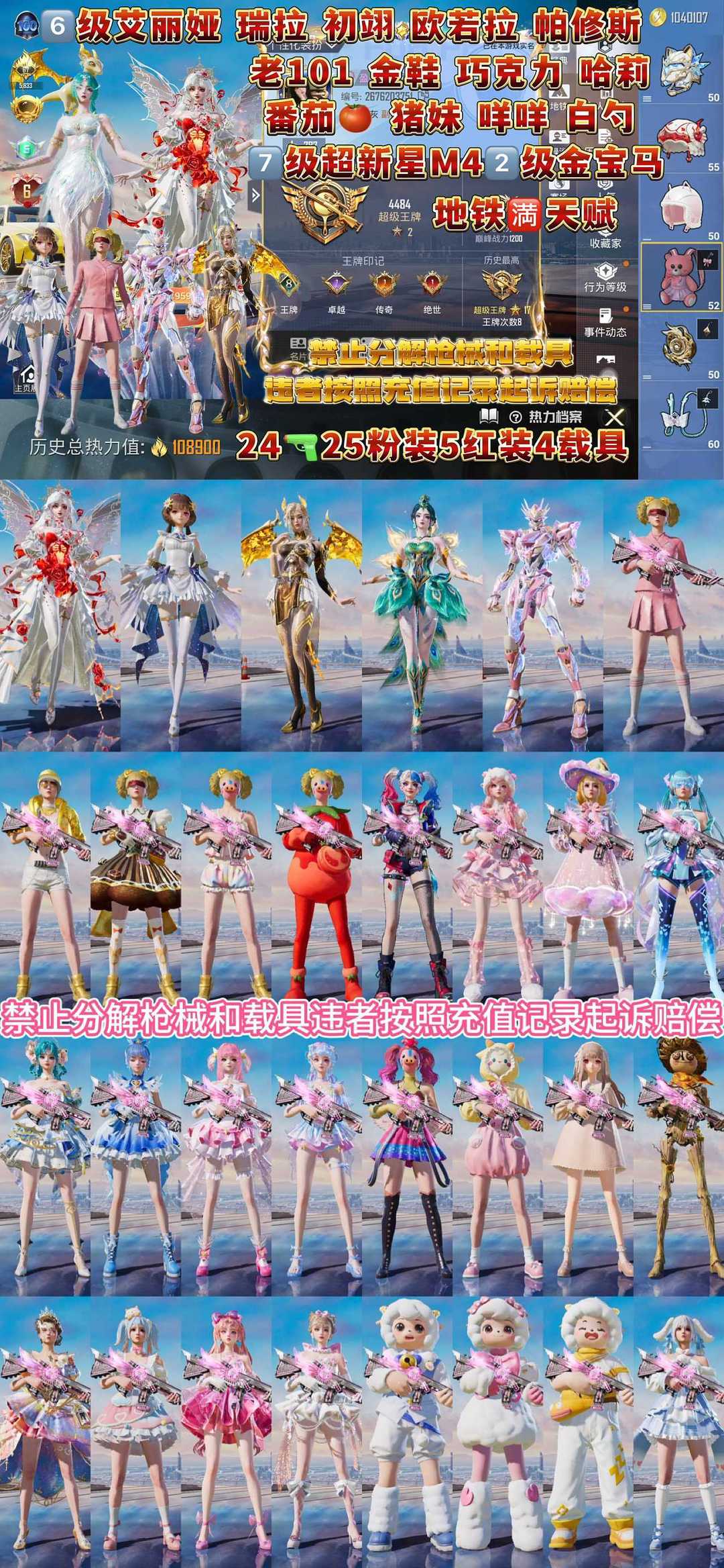 特别声明!!!! 分解枪械永久拉黑不解除 【乱投诉拉黑】有问题/上不去/其他问题/ 特殊需求/投诉没用等问题 账号累计充值超10万!切勿开挂/分解装备/恶意骂人/等等违规行为,发现违规必追查到底(平台登录记录,游戏登录ip手机号 设备串号 充值付款记录不要侥幸现在网警都能调到你的所有行为记录就算盗用他人信息也一样能查到你头上)按账号充值金额=起诉/刑事立案/追责赔偿! 非速玩【非云!本机设备畅玩不卡顿】