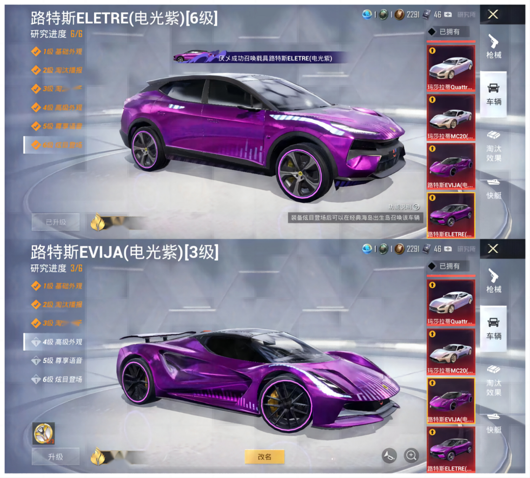 双满级路特斯⭐72粉木乃伊32特效⭐3色螳螂⭐12车5金铂金Urus⭐三胖螳螂⭐满级特效枪