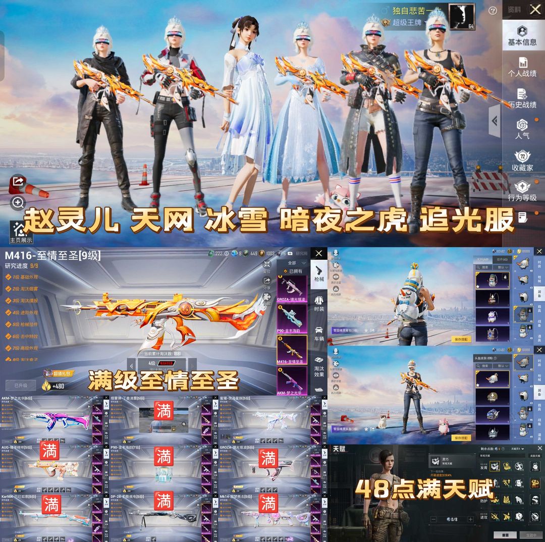 地铁满天赋/赵灵儿/天网终结者/冰雪/暗夜之虎/追光队服/满级至情至圣/8满特效/放克神游