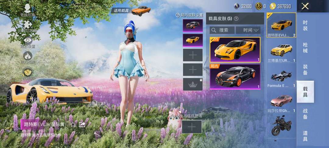 布加迪玛莎兰博基尼蹦子皮肤路特斯ak炫彩旋律猛男激战未来满级m4心之恋雨98k伏魔团火箭少女仲夏烟云