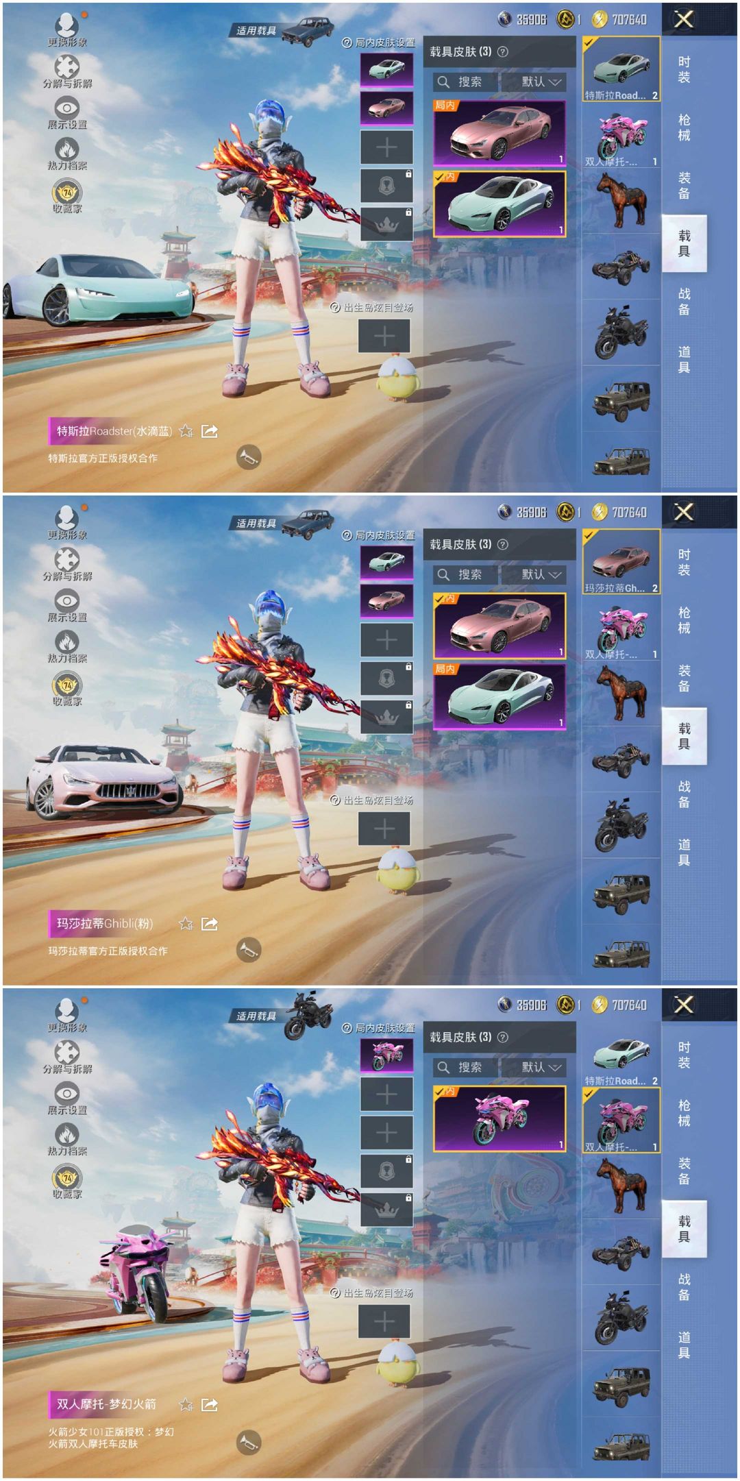 ⭕非速玩⭕〖③载具①②粉装⑧特效①④滑翔〗粉色玛莎✨火箭摩托✨五满级特效枪✨初代螳螂✨蓝色特斯拉