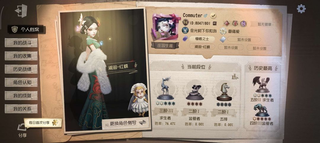 装备描述:4399!!! 庄园四美之一:红蝶十三娘,病患星辰、蜘蛛花祭、击球手熔岩蛋糕、律师倒逆之汞,超多限定金! 禁发不雅观引导内容 可排位 加好友随意 天天开心