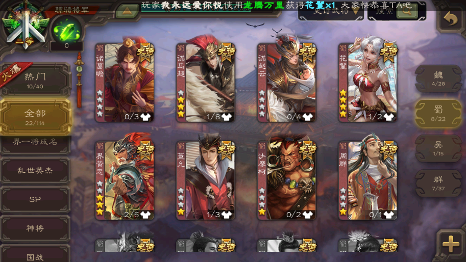 【有点将卡】动神荀彧★动刘焉★动界徐盛(大宝)裴秀★界沮授-神赵云★苏飞★沙摩柯周群