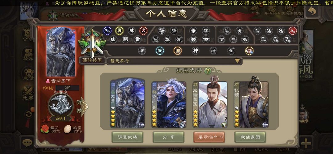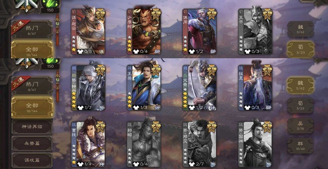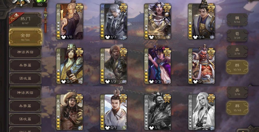 装备描述:势钟会 动文鸯 友诸葛亮 杜预 界徐盛 动麹义 王璨 星董卓 卑弥呼 沙摩柯 曹纯