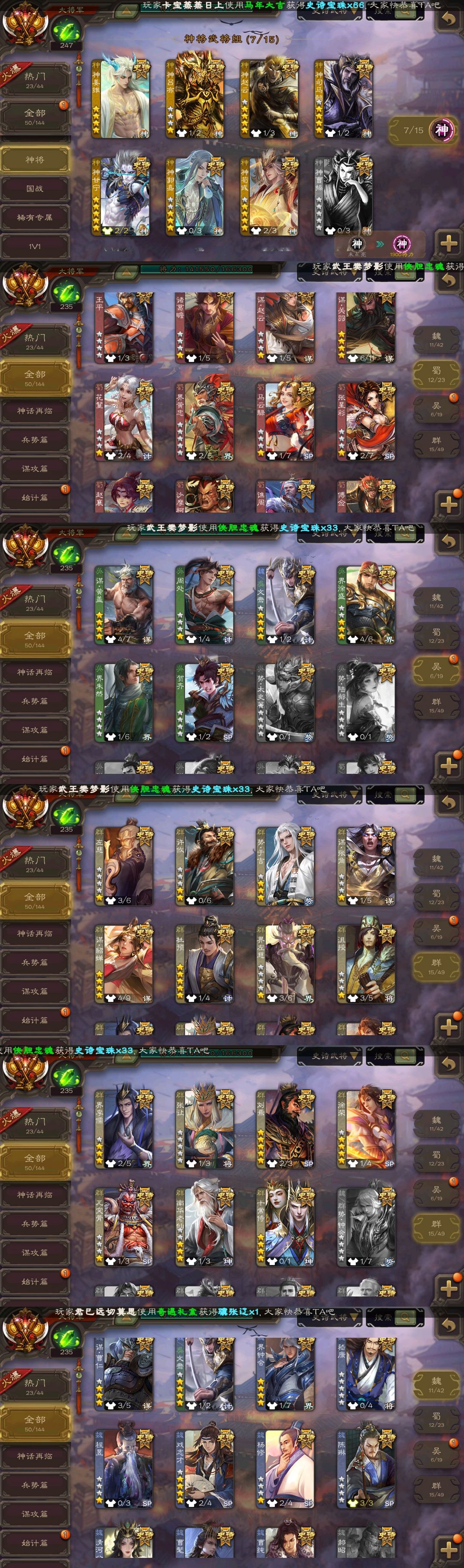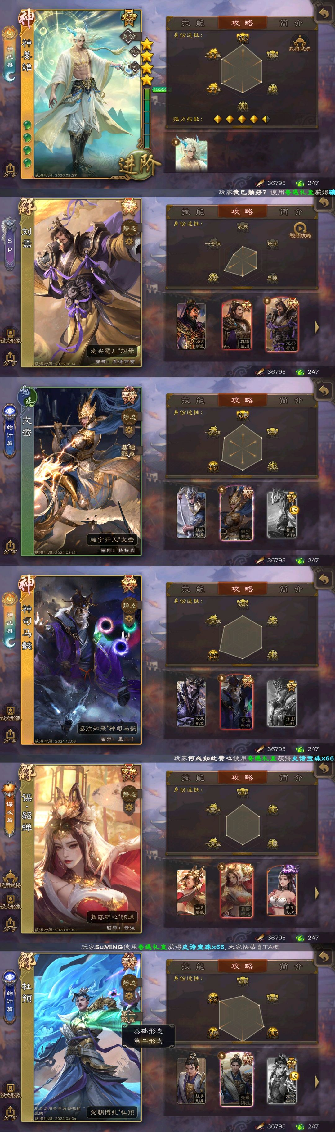 大将军✨神姜维✨双动刘焉✨三至臻文鸯杜预钟会✨动态神荀神司马谋貂蝉神甘神赵✨曹髦十常侍神郭嘉