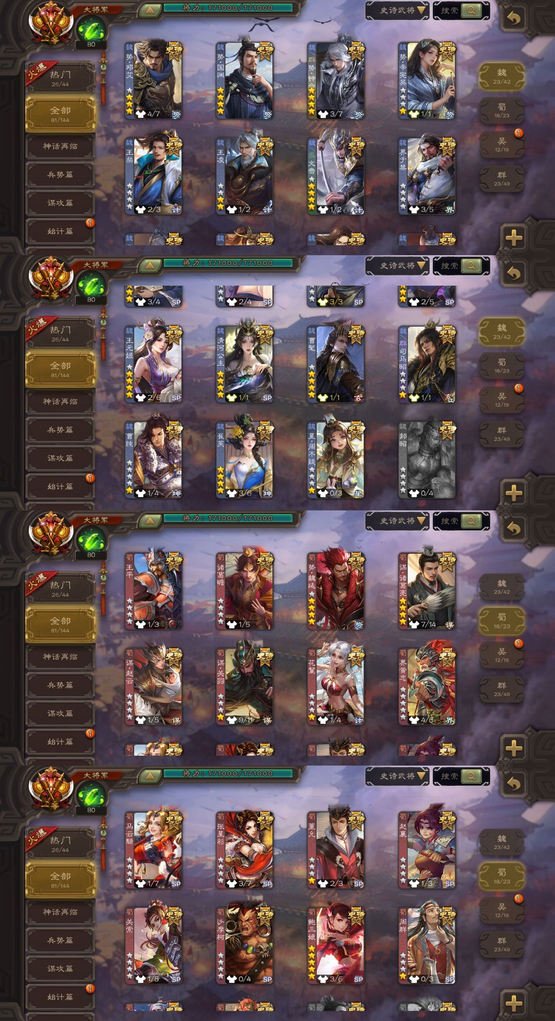 [有卡]全满氪金势邓艾势钟会崔芙❤️势国缘势魏延☪️友诸葛亮枭龙破渊曹髦一等大将军